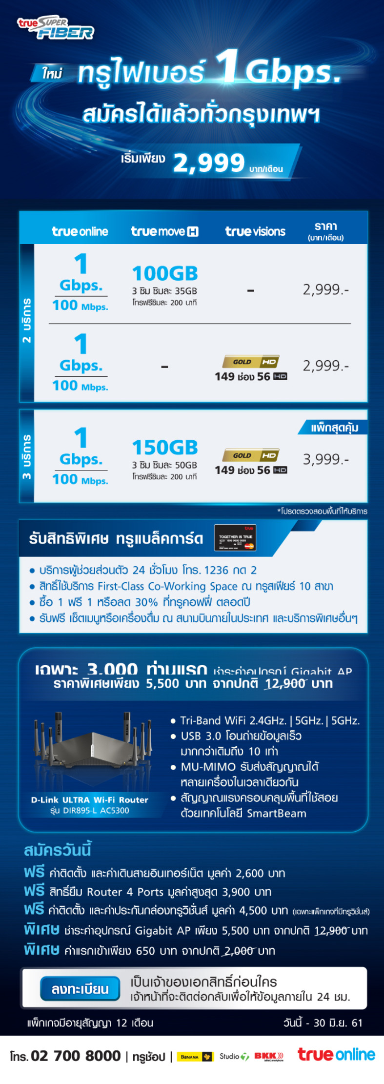สอบถามรายละเอียด True Super Fiber 1 Gbps
