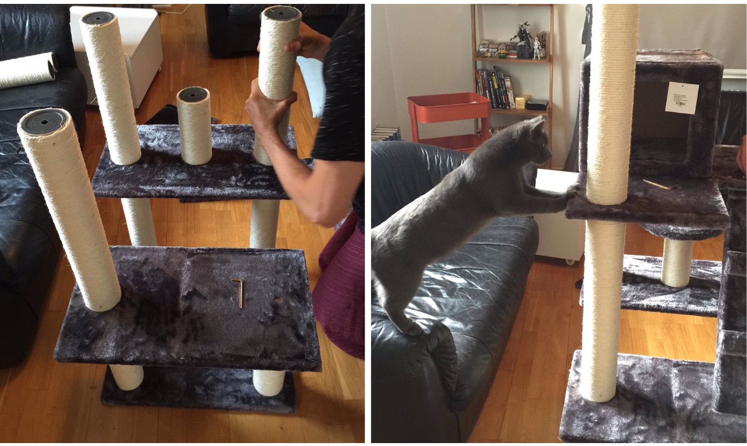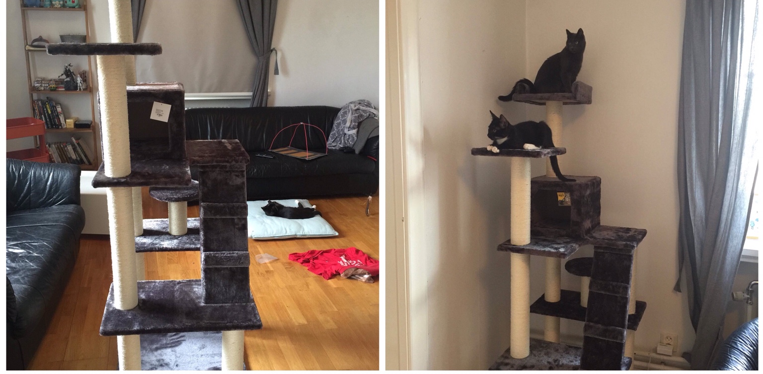 จากที่อ่านในเน็ตมาบวกกับได้ยินว่าอย่าซื้อของแพงให้แมวก็รู้สึกร้อนๆหนาวๆพอดู แต่ตัดสินใจซื้อเพราะว่ามันลดราคา 50% ค่ะ 😂 จากราคาประมาณ 6 พันบาทไทยเหลือ 3 พันบาทก็คิดว่าน่าสนใจ จริงๆอยากจะทำทางเดินแมวให้บนผนังห้องแต่ติดที่ว่าตึกที่อาศัยอยู่เป็นตึกเก่าอายุเกือบ 100 ปี กำแพงหนาและแข็งมาก จะเจาะผนังต้องเรียกช่างประจำตึกมาเจาะให้ ยังไม่พูดถึงต้องขออนุญาตเจ้าของตึกอีกเลยซื้อเถอะจ้ะ #ปาเงินใส่จอคอม