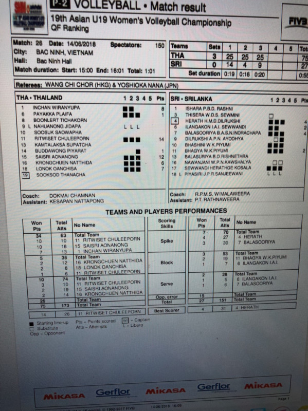 สถิติยู19 ไทย - ศรีลังกา ชุลีพร ทำคะแนนสูงสุด