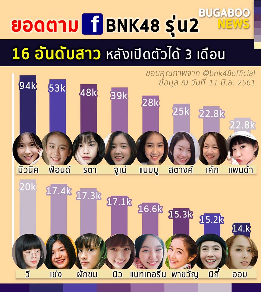 มาแล้ว...กับยอดติดตาม Facebook ของสาวๆสมาชิก #BNK48Gen2 ทั้งหมด 18 อันดับ