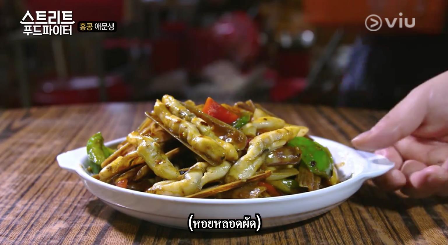 หอยหลอดผัด ที่ยังมีรสเผ็ดนำ และได้กลิ่นของซีอิ๊ว