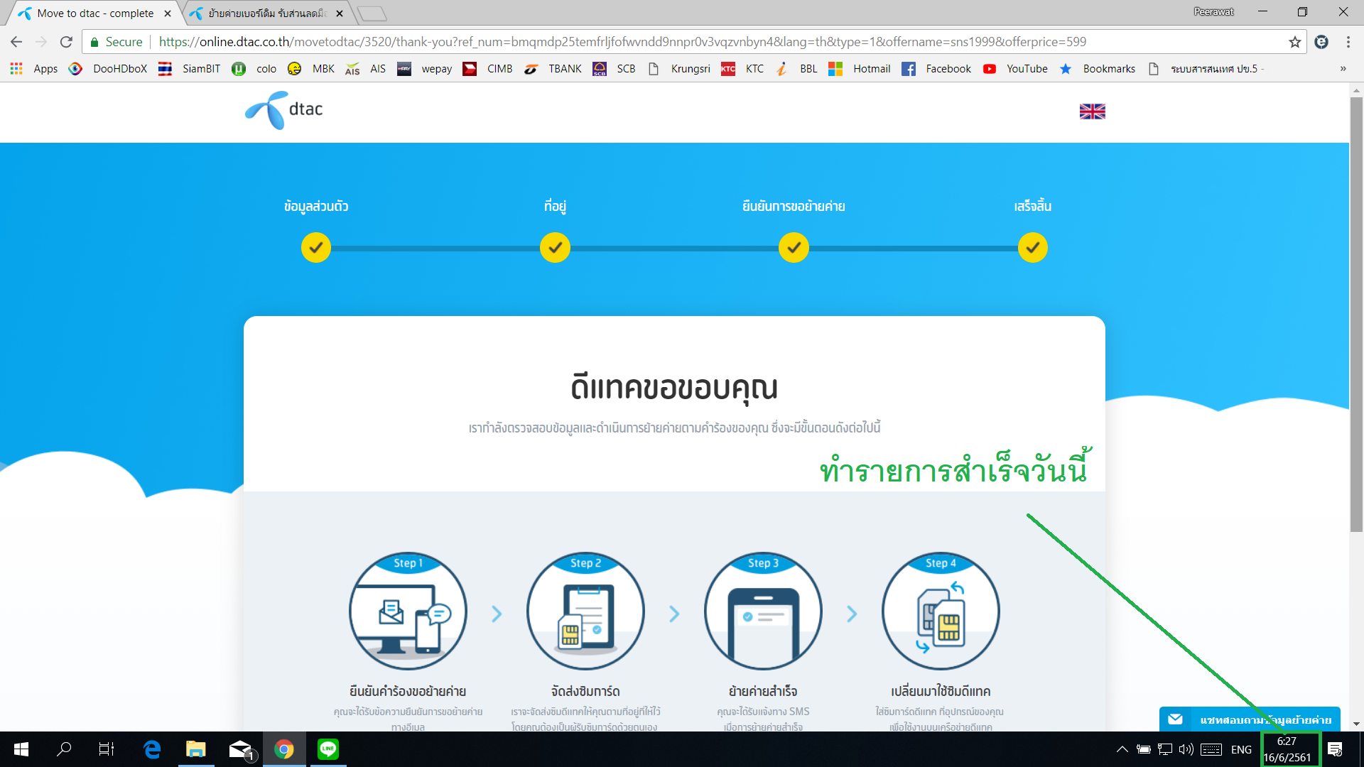 2. ก็ดำเนินการทำรายการย้ายค่ายจนสำเร็จ แต่ไม่มีขั้นตอนไหนเลยที่บอกว่าได้ หรือไม่ได้ Blue member