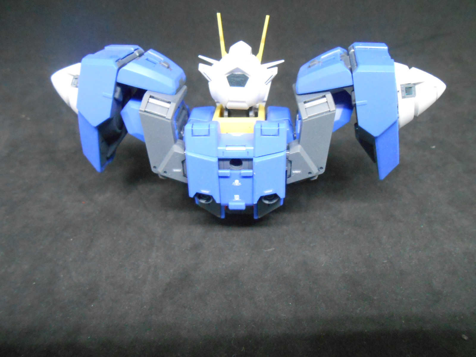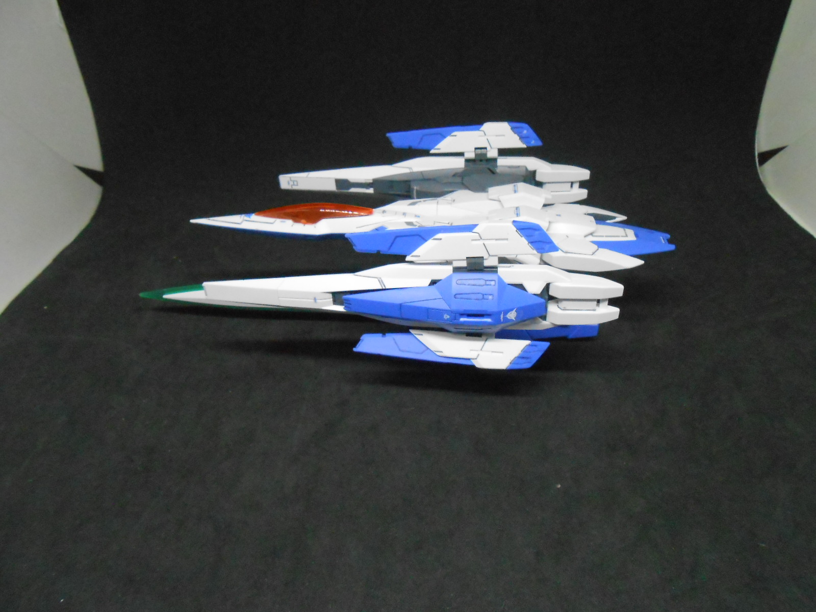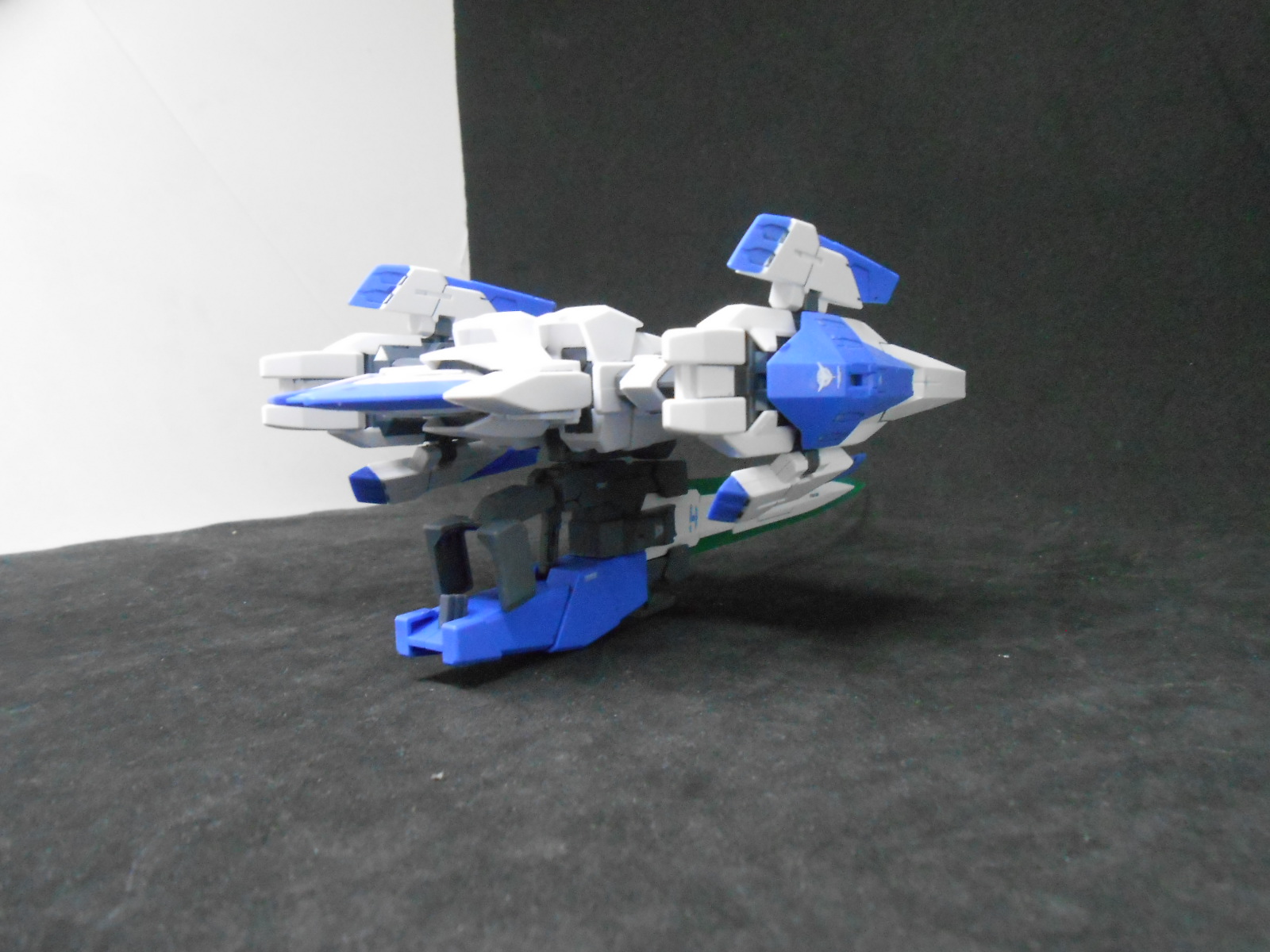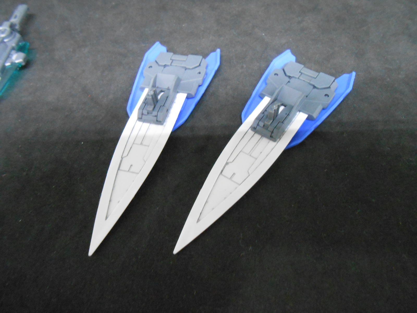 ส่วนตัว GN Sword II จะเปลี่ยนเป็น Rifle คู่ก็ได้ ตัว GN Sword III จะพับเอาคมดาบไว้ข้างหน้าได้ หรือจะยกขึ้นก็ได้ และโ,่ก็เอามาเชื่อมติดกันได้ แต่ต้องถอดชิ้นส่วนสีน้ำเงินด้านหน้าออกก่อน แล้วค่อยเปลี่ยนตำแหน่งใส่ใหม่