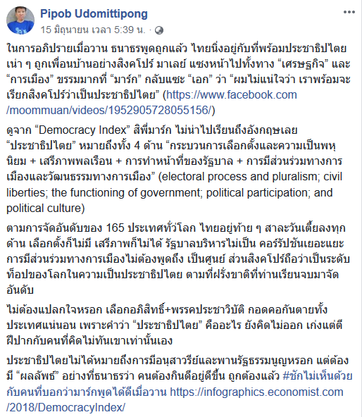 เวที...ที่ว่า คือเวทีเสวนาเรื่อง " อนาคตประชาธิปไตยไทย : ข้ามพ้น กับดัก ความหวัง ? " ที่คณะรัฐศาสตร์ มหาวิทยาลัยธรรมศาสตร์ จัดขึ้น โดยมีนักการเมือง โดยเฉพาะ นายธนาธร จึงรุ่งเรืองกิจ หัว