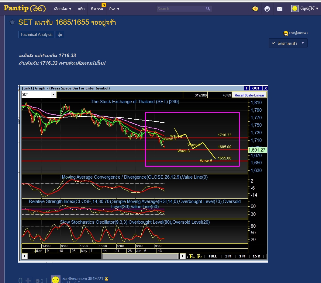 คำเตือน อย่าสวน เพราะขาลงไม่จบ ถึงจะเด้งก็เพื่อลงต่อ ยกเว้นเด้งเกิน 1716.33 กราฟเปลี่ยนต้องนับใหม่
