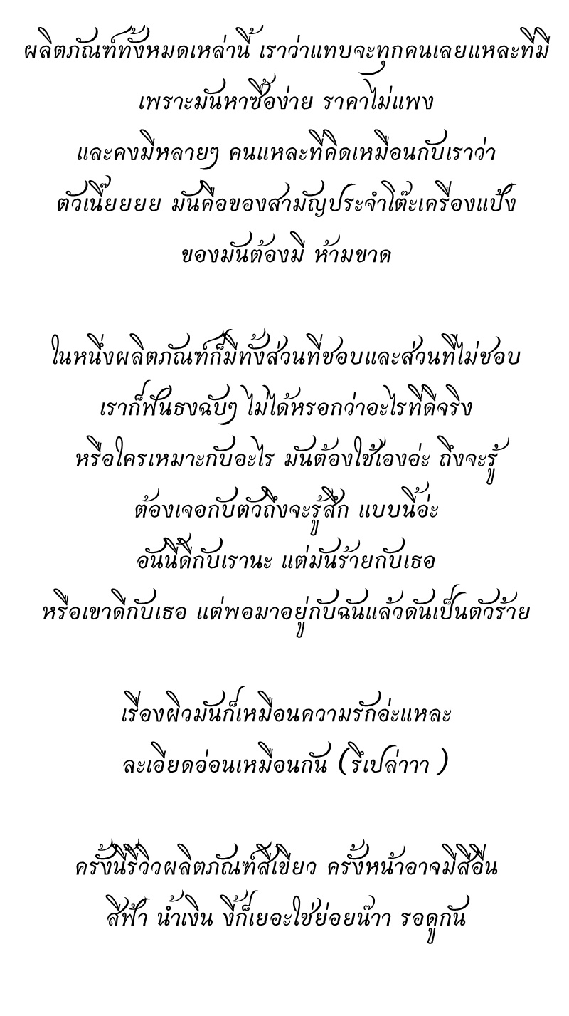 [CR] Review : ผลิตภัณฑ์สีเขียวที่ใช้อยู่ ณ เพลานี้