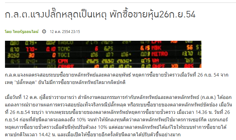 ปีที่ปลั๊กหลุด ตลท.อธิบายว่า ระบบผิดพลาด MAI -10% แต่ระบบสั่ง SET หยุดการซื้อขาย