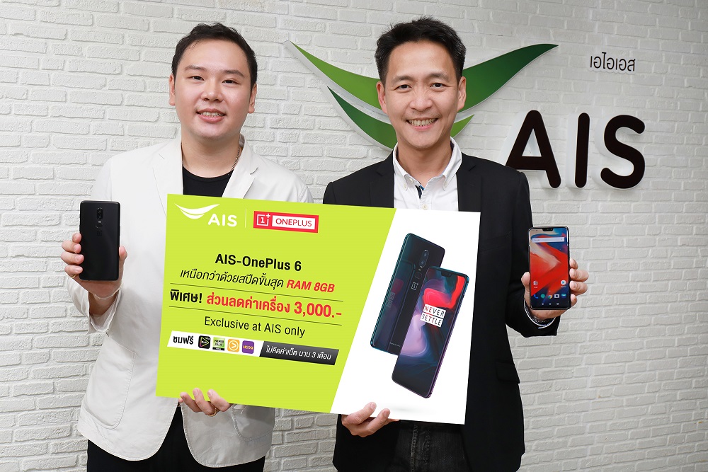 เอไอเอส เดินเกมผู้นำตลาดสมาร์ทโฟนต่อเนื่อง พร้อมมอบประสบการณ์ใช้งานสมาร์ทโฟนรุ่นใหม่ให้คนไทยได้สัมผัสก่อนใคร ล่าสุด เขย่าวงการกระหึ่มอีกครั้ง ประกาศจับมือเป็นเอ็กซ์คลูซีฟพาร์ทเนอร์กับ OnePlus ผู้นำธุรกิจมือถือระดับโลก ที่สร้างปรากฏการณ์นวัตกรรมสมาร์ทโฟน สเปกสูงราคาดี มาแล้วทั่วโลก เจ้าของฉายา “นักฆ่าเรือธง” ที่คนไทยต่างรอคอย โดยเอไอเอสเป็นผู้ให้บริการรายเดียวในเมืองไทย ที่ร่วมนำสมาร์ทโฟนรุ่นใหม่ล่าสุด “OnePlus 6” เข้ามาเปิดตัวและจัดจำหน่ายเป็นครั้งแรก ให้สาวกชาวไทยได้สัมผัสกับสุดยอดสมาร์ทโฟน Hi-end ดีไซน์ล้ำ สปีดขั้นสุดด้วย RAM 8GB และความเร็วแรงด้วยขุมพลัง Snapdragon 845 ที่พร้อมตอบไลฟ์สไตล์ชีวิตยุคดิจิทัลสำหรับคอเทคโนโลยีและคอเกมส์ และรองรับเครือข่าย AIS NEXT G ที่เร็ว แรงที่สุด ในเอเชียตะวันออกเฉียงใต้