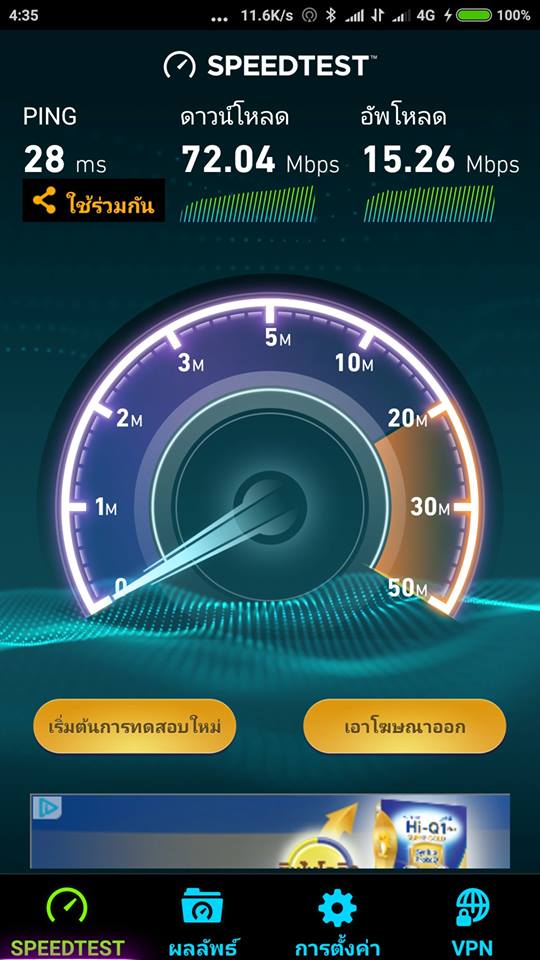 แรก ๆ ได้สปีดมาสูงมาก เทสอยู่ที่ไหนก็ได้อย่างต่ำ 30Mbps ไปจนถึง 90Mbps กว่า ๆ
