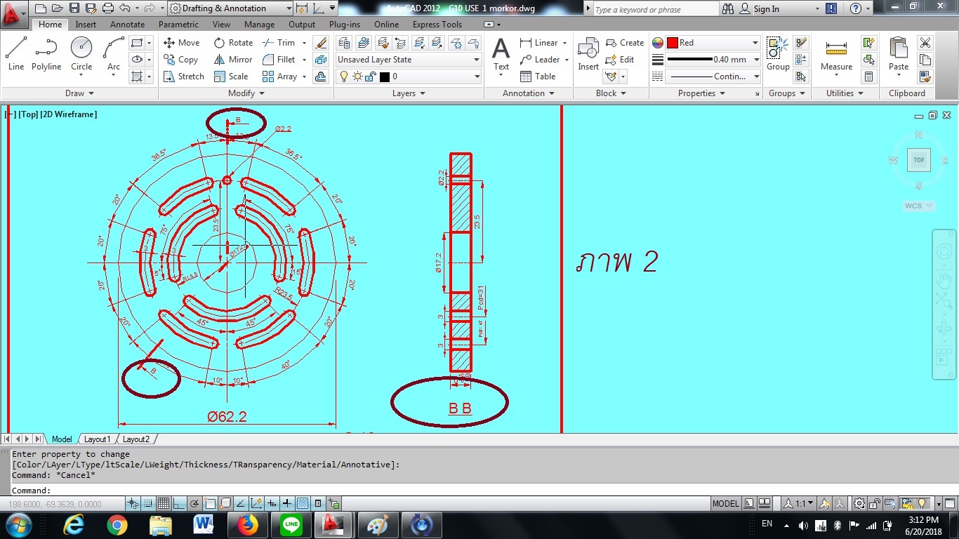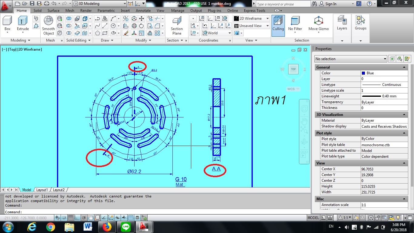 ภาพ 1 A เเสดง ทิสทางการตัด AA ภาพ งานตัด ภาพ 2 เหมือนภาพ 1 ทั้งหมด