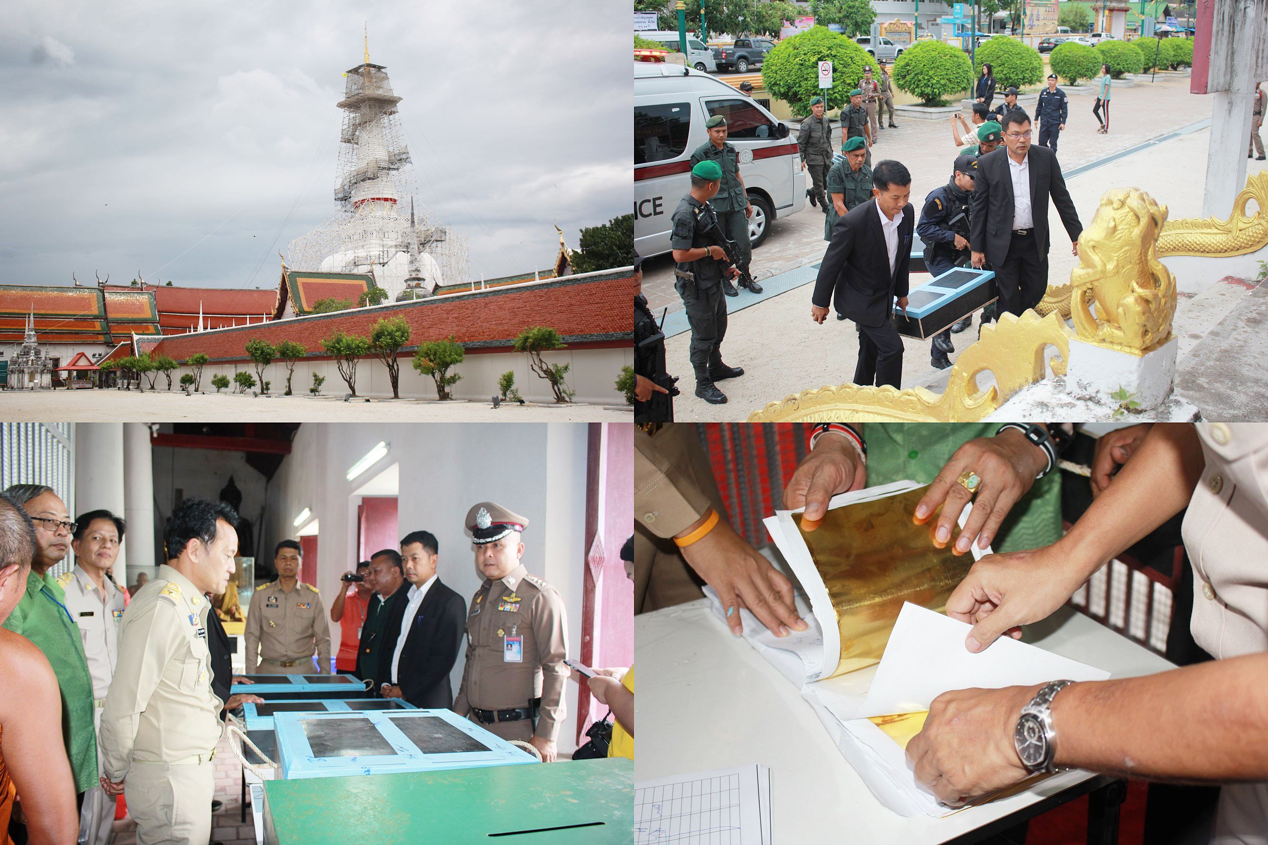 ทหาร ตำรวจ คุมเข้ม ทองคำบูรณะองค์พระบรมธาตุเจดีย์ จังหวัดนครศรีธรรมราช ขณะที่ ผวจ.นครศรีธรรมราช ระบุ การบูรณะครั้งนี้ถือเป็นพุทธบูชา โดยนำเทคโนโลยีและวิทยาการที่ดีที่สุด ในช่วงสมัยมาใช้ คาดจะอยู่ได้อีกกว่า 100 ปี