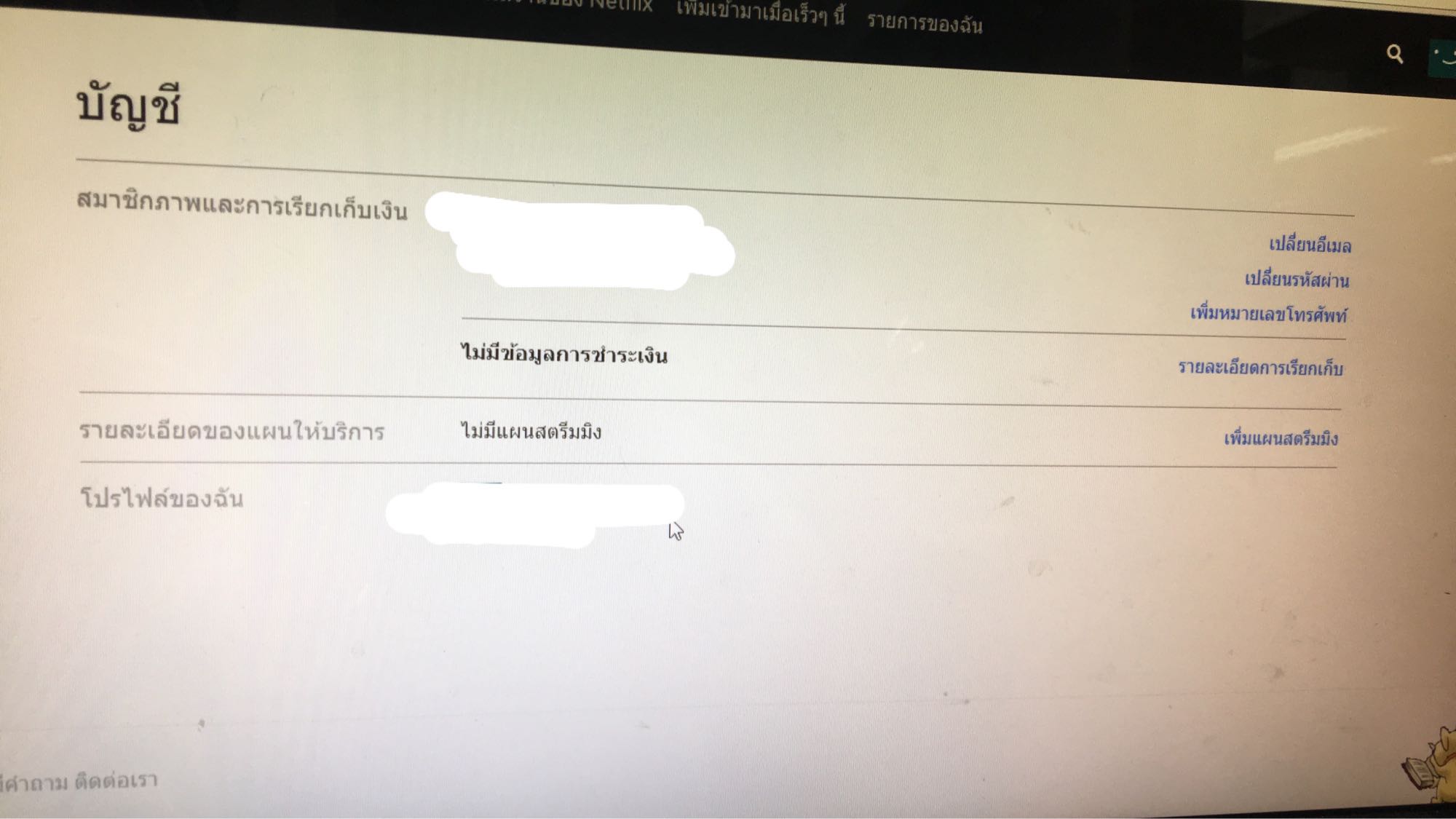แล้วต้องการจะยกเลิก ก็ได้ทำตามขั้นตอนที่ netflix ระบุว่าให้เบือกตรงบัญชี แล้วกดตรง “ยกเลิกบัญชี” แต่บัญชีของเรามันไม่มีให้เลือก