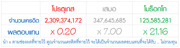 oo .. ผลตอบแทน ดี๊ ดี ถ้าสวนสำเร๊จ .. โปรตุเกส - โมร็อกโก .. oo