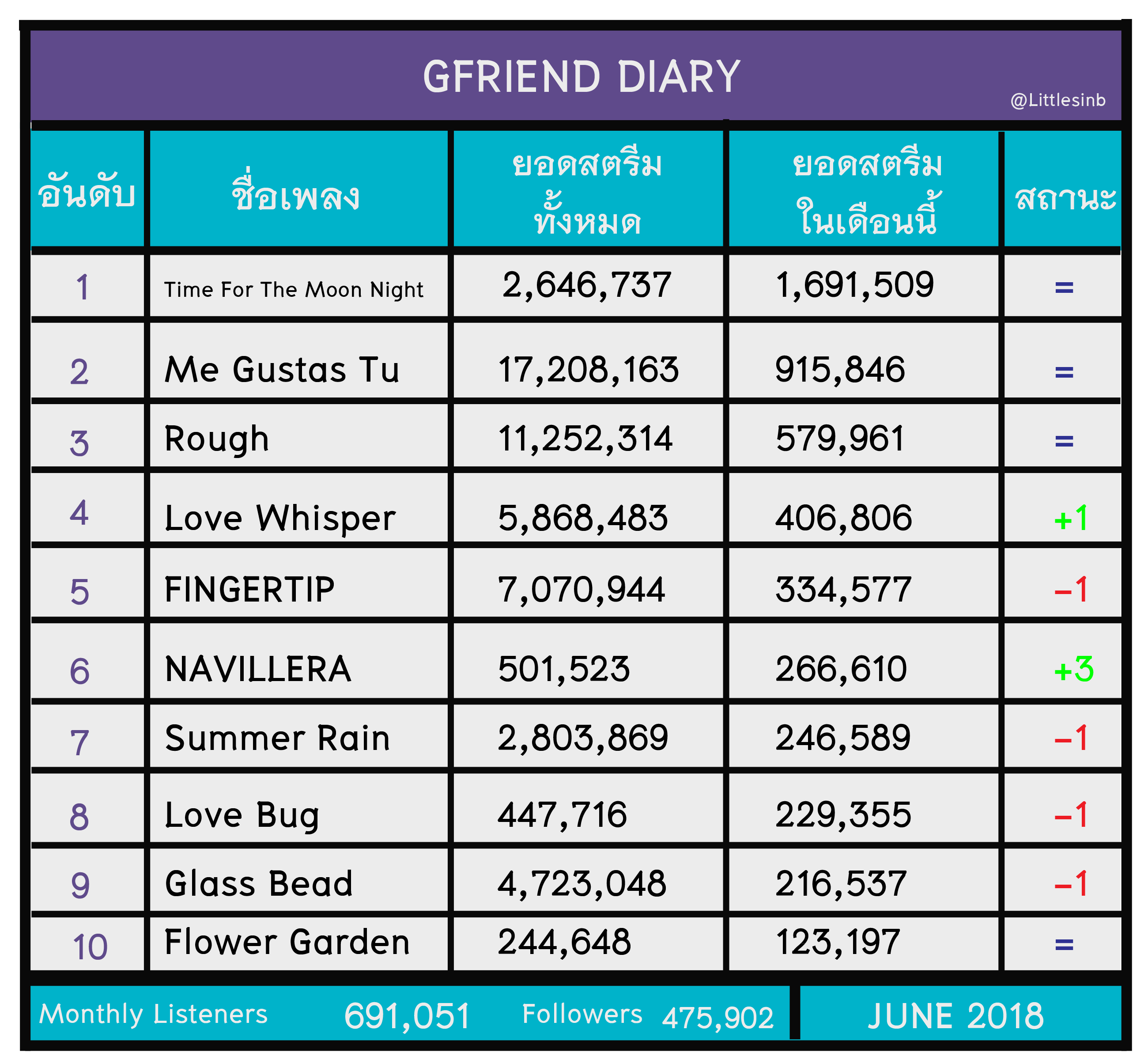 [GFRIEND DIARY] 10 อันดับเพลงยอดนิยมใน SPOTIFY ของยอจาชินกู ประจำเดือน มิถุนายน 2561
