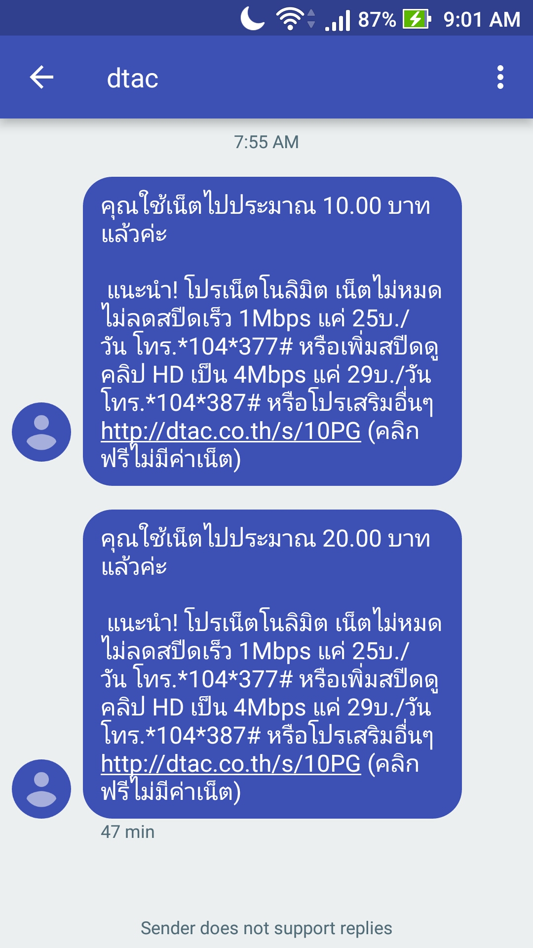 มีข้อความเข้าว่า 2 รอบ ว่าใช้เนตไปแล้ว xx.xx บาท