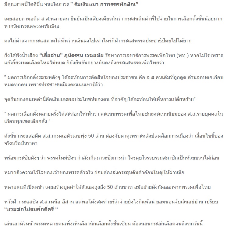 เช็กกระแสปั่นราคา ส.ส.30-50 ล. เพื่อไทยไม่หวั่น พรรคใหม่ระวังเลือดตกใน ...มติชนออนไลน์ .../sao..เหลือ..noi