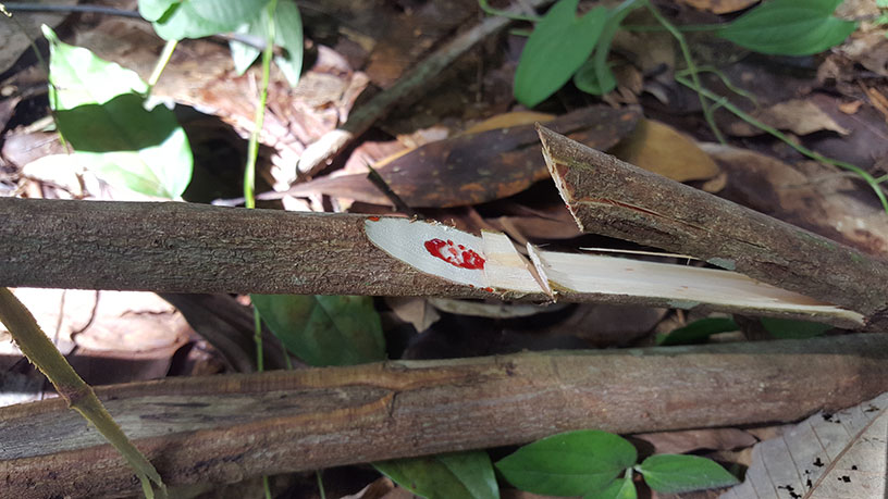 มีใครรู้บ้างครับว่าต้นนี้มันต้นอะไร บังเอิญไปตัดต้นไม้ในสวนแล้วไปตัดต้นนี้โดยบังเอิญ เห็นมียางสีแดงไหลออกมาดูแปลกดี ขอบคุณครับ