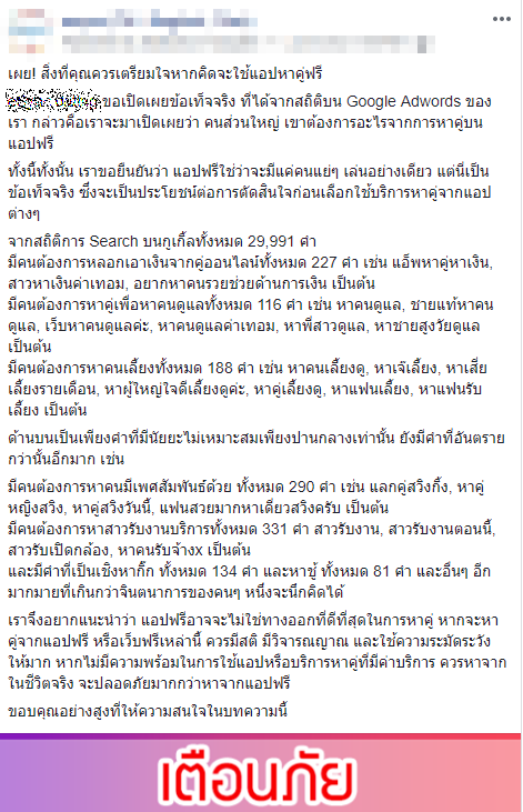 เห็นแบบนี้แล้วไม่กล้าใช้แอปฟรีหาคู่ หรือเวบไรงี้เลยค่ะ คงต้องใช้พวกที่เสียเงินเท่านั้น มันน่ากลัวเกินไปอะค่ะ