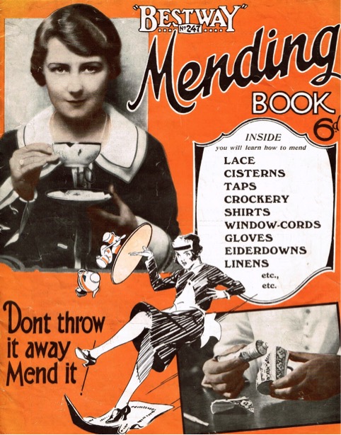 ตัวอย่างตำราหรือคู่มือว่าด้วยการเย็บ ซ่อม ปะ ชุน (Make Do and Mend) ในภาพเป็นตำราสอนชุนผ้าและซ่อมแซมสิ่งของต่าง ๆ ในบ้านเรือน