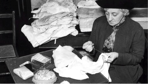 สตรีอังกฤษกำลังซ่อมแซมเสื้อผ้า เพื่อไม่ต้องซื้อหาใหม่เรื่อยไป