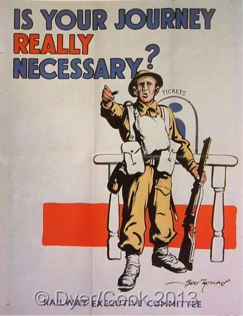 โปสเตอร์พร้อมข้อความว่า “คุณจำเป็นต้องเดินทางจริง ๆ ใช่ไหม” ในอังกฤษ
