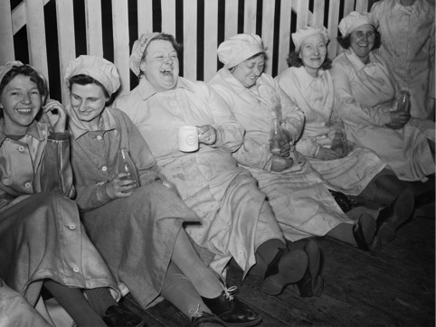 คนงานหญิงในโรงงานผลิตอาวุธของอังกฤษระหว่างพักดื่มชา