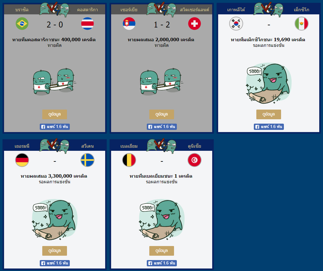 ดวงกำลังมา.. ทายถูก 3 คู่ เป็นวันที่ 2 แล้ว.. อีกคู่ไปแพ้ทีมเต็งอีกแล้ว.. รอลุ้น "ผลประกอบการ" วันนี้อยู่ เพื่อน ๆ สมาชิกเป็นไงกันบ้างครับ