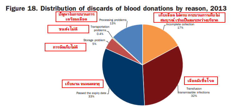 5) โลหิตที่รับไป แต่ต้องทิ้ง คิดเป็น % ดังนี้