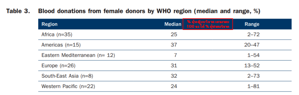 โดยเฉพาะตะวันออกกลาง ผู้หญิงบริจาคโลหิตแค่ 7% ของทั้งหมด (ผู้ชาย 93%)