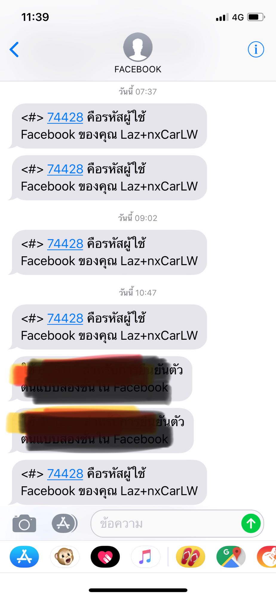 ตามหัวข้อกระทู้เลยค่ะ กดส่งข้อความให้ส่งรหัสotp มาให้เรา เพราะเราจะเข้าเฟสบุ๊ค เราทำล็อคแบบ2 ชั้น ตอนแรกทำตอน23.50กว่าๆ(เมื่อวาน) มันไม่ส่งมาสักทีเลยรอ เพราะกลั