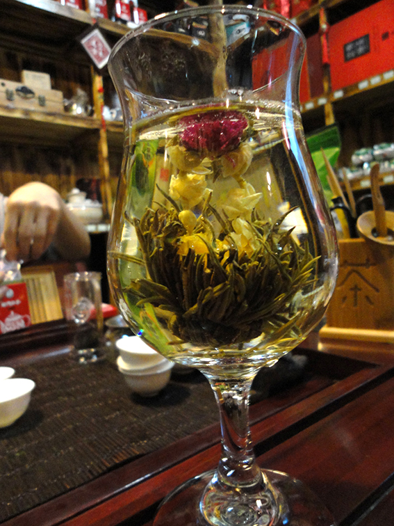 อันนี้เป็นชาที่เค้าทำเป็นรูปดอกไม้ พอใส่น้ำร้อนแล้วเสริ์ฟบนแก้วใสสวยๆ ว้าวววออกมาเป็นอุบะเลย