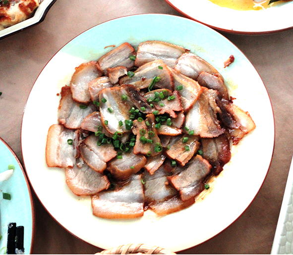 หมูสามชั้นที่นี่เด็ดมาก ตอนไปรอบสองที่จีนนี่นั่งเครื่องตามทีมงานไป แล้วเรานั่งข้างคนจีน เราก็อ่านศัพท์ของจีน
