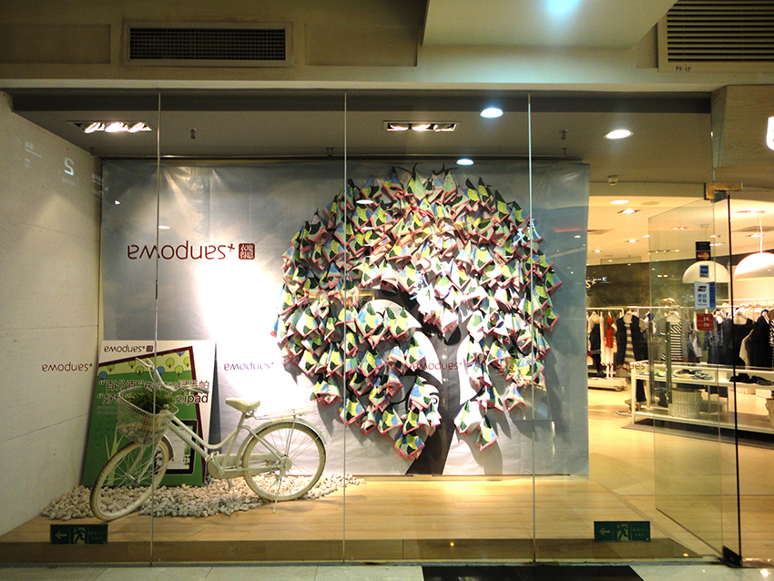 แวะชมดิสเพลย์สักหน่อย ที่นี่ดิสเพลย์สวยๆไม่ค่อยมีเลย ได้แค่บางไอเดียเท่านั้น เป็นผ้าเช็ดหน้าแฮงค์ๆกับต้นไม้