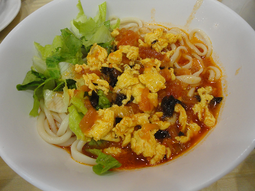 เหมือนก๋วยเตี๋ยว แต่เป็นแบบน้ำใสกับซอสมะเขือเทศ