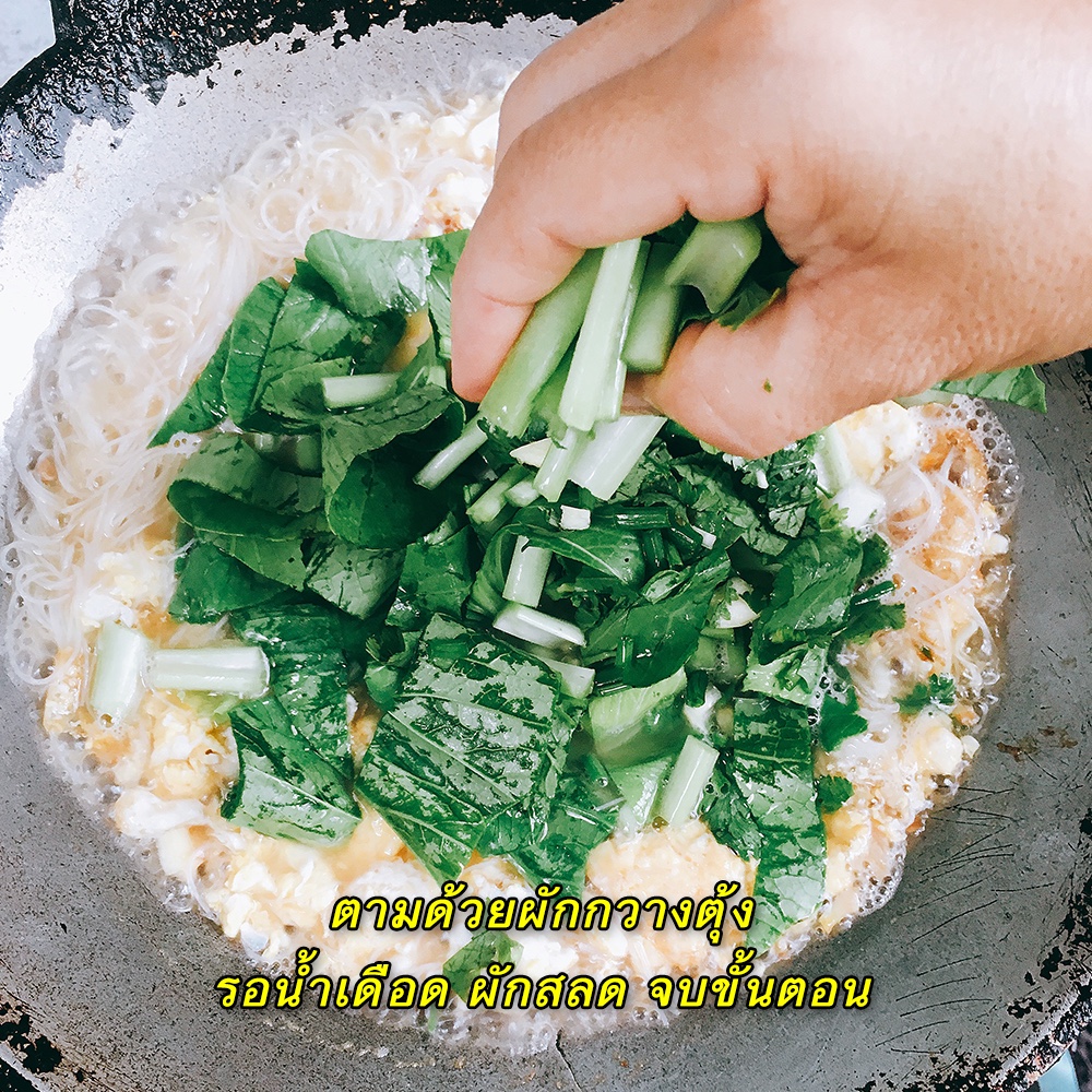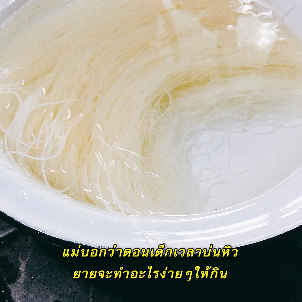 เมนูนี้เกิดขึ้นจากการปรึกษาแม่ว่าเราจะตั้งเตาอะไรกันดี อยากทำเมนูที่ทุกวันนี้ไม่ค่อยได้กินเลย แม่ก็ได้โอกาสขุดความทรงจำตอนเด็กขึ้นมา แม่อธิบายง่ายๆว่ามันคือไข่เจียว ใส่น้ำ ใส่เส้นหมี่ ฮะ! อะไรยังไง? แค่ฟังปุ๊ป..ไข่เจียวเลิฟเวอร์อย่างเราก็อยากกินทันที เอ้า! เริ่มตั้งเตาได้