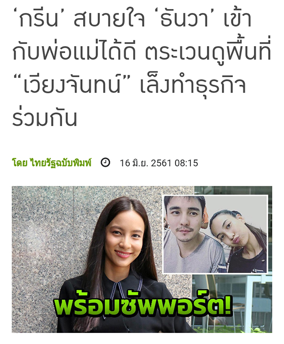 ธันวาเข้ากับพ่อแม่เราได้อย่างดี “ใช่ค่ะ เข้ากับคุณพ่อได้ บางทีโทร.หาป๊าเองโดยไม่ได้บอกกรีนเหมือนกัน”
