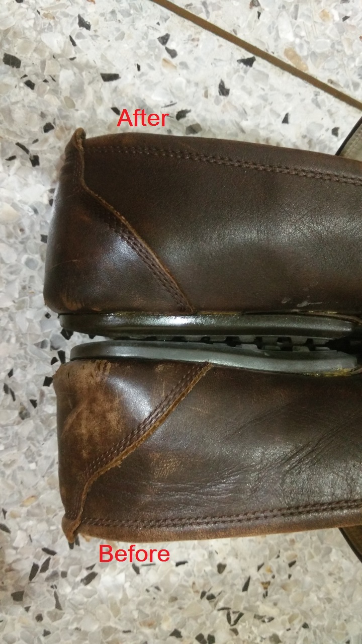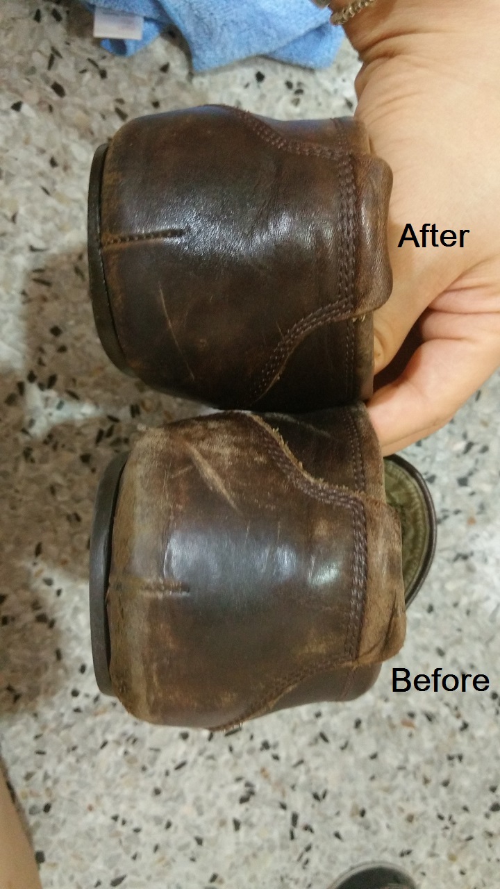 อันนี้ Before & After นะครับ หลังจากที่ทิ้งให้น้ำยาซึมบำรุงรองเท้าหนังเรียบร้อยแล้ว
