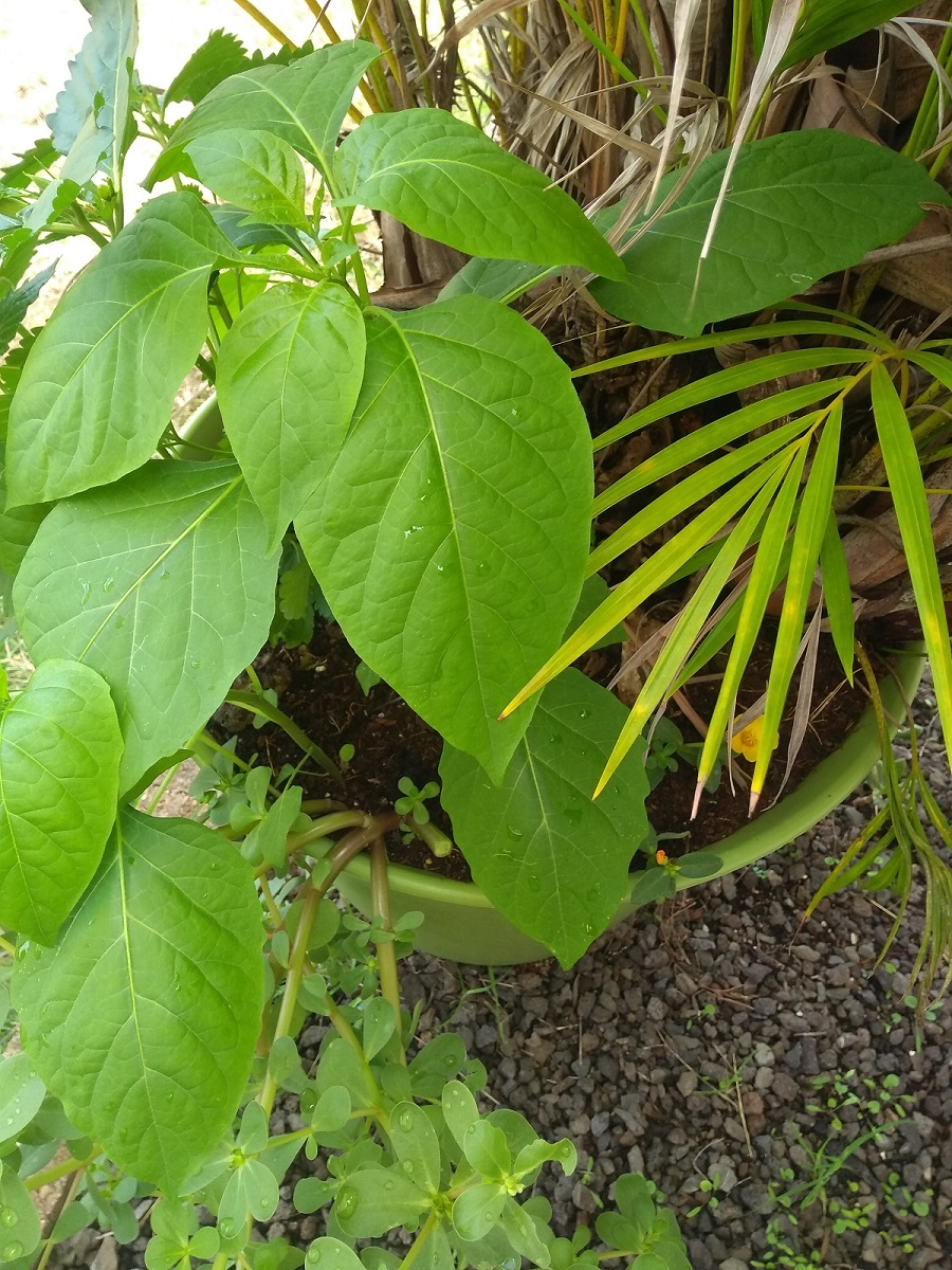 มี 2 ต้นนี้ขี้นแซมในกระถางต้นปาล์ม หากเป็นวัชพืชจะได้ถอนออกค่ะ