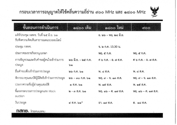 • วันเสาร์ที่ 18 ส.ค. 2561 กำหนดให้เป็นวันประมูลคลื่น 900 MHz