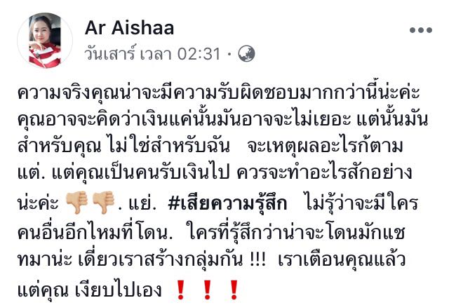 พี่เราก็ไม่ได้อะไรมากค่ะ เพราะเงินแค่ไม่ถึงสองพัน แต่ที่ข้องใจคือ