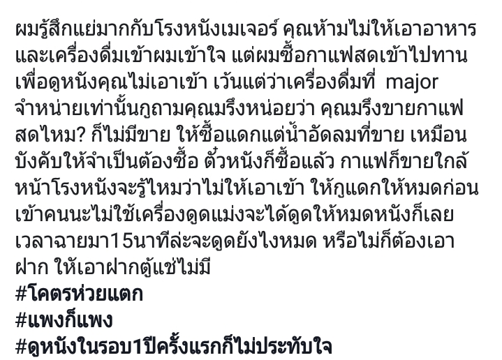 ไม่ดื่มน้ำอัดลม ทานแต่กาแฟสด โรงหนังไม่มีขาย ซื้อหน้าโรงเอาเข้าได้ไหมคะ