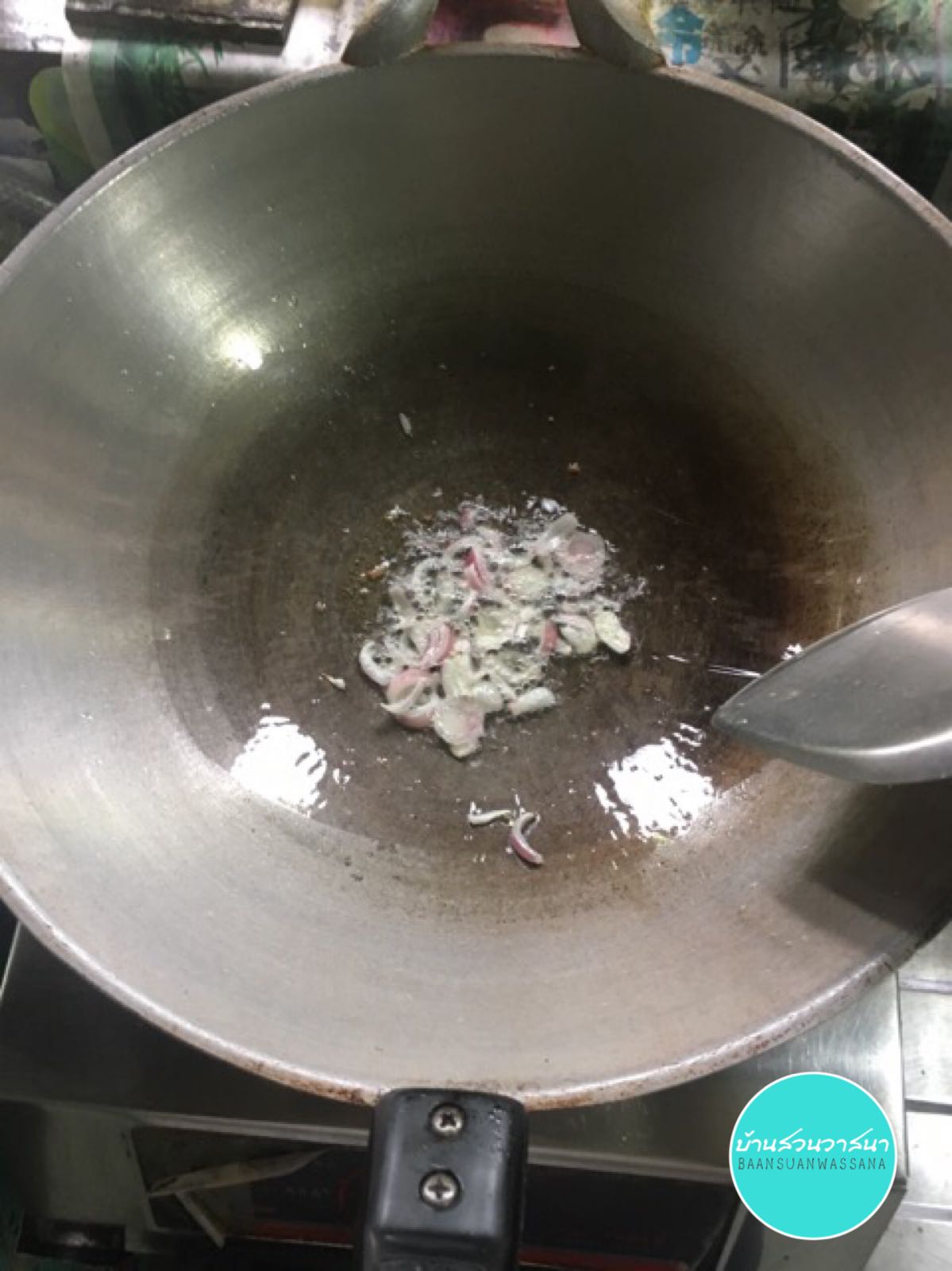 ผัดให้เข้ากัน ผมปรุงรสแค่น้ำปลานะ เพราะรสอูนามิมันจะมาจากวัตถุดิบอื่นอยู่แล้ว