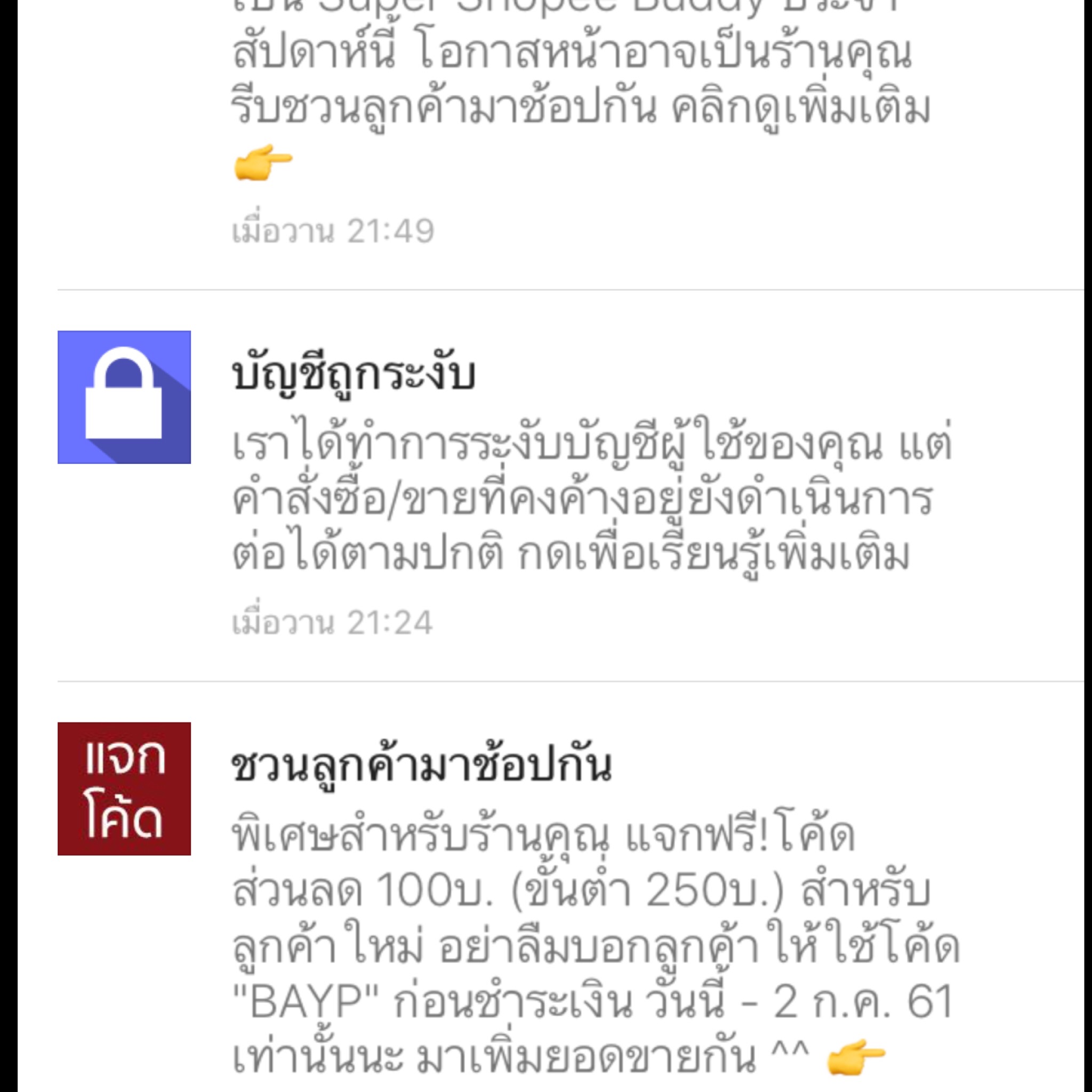 คือทุกชิ้นเรามีของพร้อมส่งหมดนะคะ คืออยู่หน้าร้านก็หยิบไปได้เลย เราเลยโอเคเมื่อวาน 25 มิย.61 เราลองคุยกับลูกค้าเลยว่า เคยใช้แอปนี้ไหมๆ บลาๆ คนไหนไม่เคยใช้ เราก็แนะนำเลย ให้สมัครงี้ๆ พร้อมสอนวิธีใช้โค้ดส่วนลด ต้องบอกก่อนนะว่าลูกค้าทุกคนที่เราแนะนำ ไม่เคยมีบัญชี Shopee เลยสักคน 4 คนเมื่อวาน มีน้องคนนึงเราให้ wifi ร้านเค้าโหลด เพราะเค้าไม่มีเน็ต ที่อยู่ก็ให้ใส่บ้านเค้าจริงๆไม่ใช่ละแวกนั้น มือถือใครมือถือมันเบอร์ใครเบอร์มัน และบางคนมีเงินสด ไม่มี Mobile Banking (เด็กต่างจังหวัด) บางคนเน็ตตัวเอง โหลดเอง โอนเองด้วยซ้ำ เราก็โอเคอะน้องจ่ายมาเดี๋ยวพี่จัดการให้และเราก็สอนวิธีน้องๆซื้อของในแอปนี้เลยดี บอกว่าเออน่าสนใจยังไง (ส่วนตัวซื้อเยอะทุกเดือน) คือเราทั้งซื้อ ทั้งขาย ที่สำคัญแม้แต่การส่งของที่บอกว่าฟรี เรายังตั้งร้านเราแบบ ผู้ซื้อมารับสินค้าด้วยตัวเอง คือเราคิดว่าไม่น่ามีปัญหาอะไรอ่ะ เราตั้งไปตรงๆไม่คิดจะไปเอาค่าส่งฟรีเค้าด้วย แต่งงว่าทำไม ร้านค้าเราถึงถูลบล๊อค? ขายปกติก็ไม่เคยโดนอะไรเลยสงบมาตลอด แต่พอมาจริงจัง ตั้งใจกับกิจกรรม Shopee Buddy นี้แล้วเกิดเหตุการณ์แบบนี้เราเสียความรู้สึกมาก เมื่อวานน้องๆก็ขอชื่อร้านเราไปเพิ่มเพื่อดู และโดบล๊อคแบบนี้ใครอยากจะแนะกัน นี่งงมาก ร้านโดนบล๊อคคนไม่เห็นของเสียรายได้ไปอีก ร้นเราก็ 4-5 ดาวเป็นส่วนมาก ตลอดเราคงคุณภาพไว้ทุกเรื่อง สินค้า การบริการ คือเราตั้งใจมากอ่ะ มาเจอแบบนี้ตัดช่องทางทำมาหากินมากๆ ถึงจะไม่ใส่เดือนละล้านๆ แบบคนอื่นเค้าแต่การขายของ คุยกับลูกค้าเราก็มีความสุขตรงนี้และตั้งใจตลอด