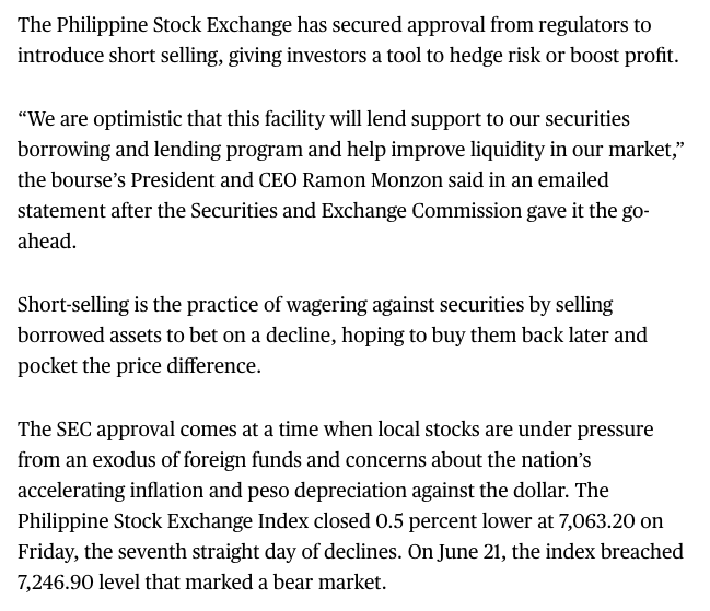 ตลาดฟิลิปปินส์เพิ่งจะไฟเขียวให้ทำ short selling ได้ ดีใจกับเม่าฟิด้วย