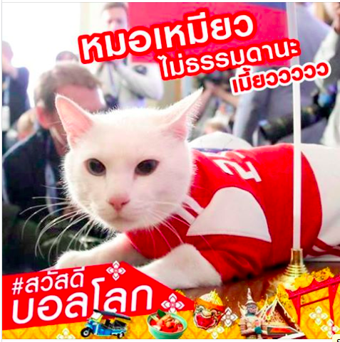 รัสเซีย - ซาอุฯ เลือก รัสเซีย 🐱 (ด้วยการกินอาหารชามที่มีธงรัสเซียปักอยู่)