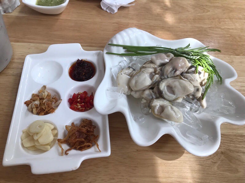จานแรกที่มาเสิร์ฟ หอยนางรมสด ขนาดตัวไม่ใหญ่มาก มีตัวเล็กปนมาบ้าง สด หวาน เครื่องเคียงให้มาไม่กั๊ก ขอเพิ่มได้ จานนี้มีซ้ำ