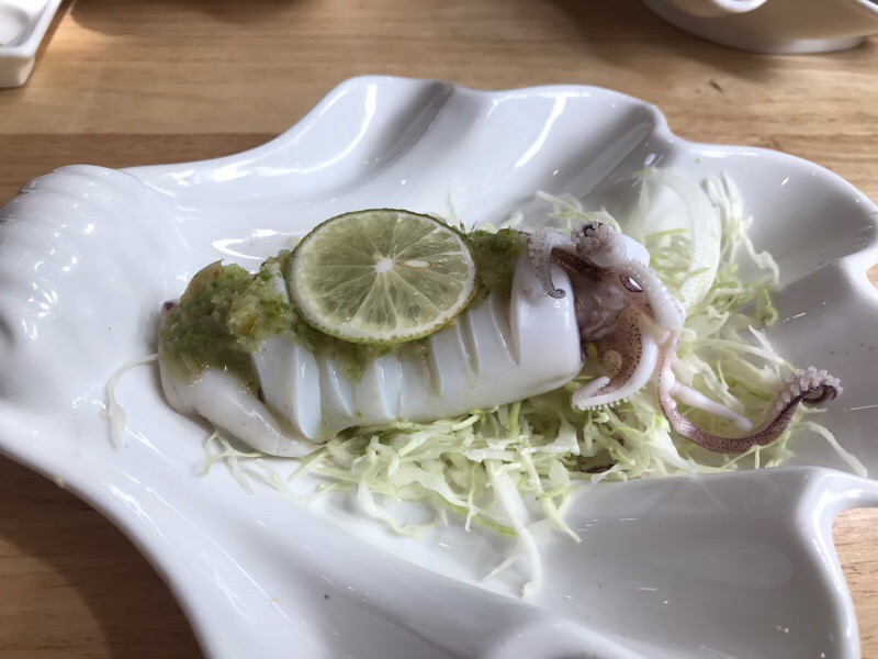 ตามมาด้วย หมึกนึ่งมะนาว น่าจะเป็นหมึกลวกแล้วราดด้วยน้ำจิ้มมากกว่า จานนี้เฉยๆ ถ้าชอบหมึก ก็สั่งกินได้ เพราะน้ำจิ้มซีฟู๊ดร้านนี้โอเค