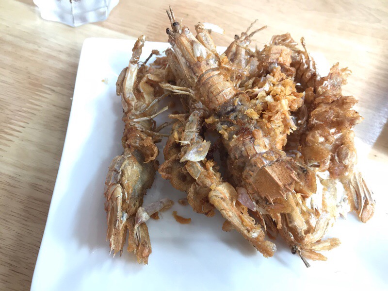 กั้งทอดกระเทียม ไม่แนะนำให้สั่ง เพราะกั้งแบบนี้ พอเอามาทอดแล้ว เนื้อแทบจะไม่มี แต่ร้านทอดออกมาได้กรอบ เลยเคี้ยวมันทั้งตัวเลย ขี้เกียจแยกเปลือก