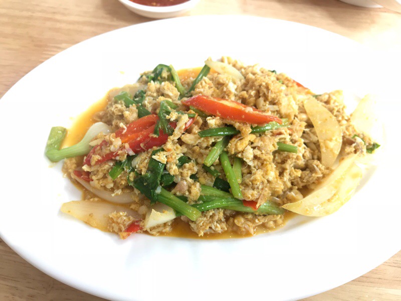 เนื้อปูผัดผงกะหรี่ รสชาตยังไม่เข้มข้นเท่าไหร่ เนื้อปูไม่เป็นก้อน แต่ก็พอได้