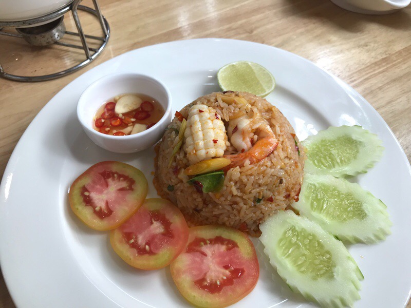 ข้าวผัดต้มยำทะเล จานนี้แนะนำให้ลอง ถึงแม้ว่าจะตัดกำลัง แต่ควรสั่ง เพราะผัดมาได้ดี รสชาติเข้มมาก แต่อาจจะรำคาญตรงที่ต้องคายเครื่องต้มยำทิ้ง